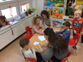 S maminkami jsme potom ještě za doprovodu vánočních písniček tvořili přáníčka nejen pro nás, ale i pro babičky a dědečky z pečovatelského domu. Maminky pomáhali, tak nám to šlo od ruky.